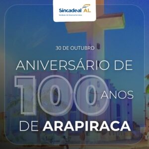 O Sincadeal, por meio de seu presidente José de Sousa Vieira e toda a diretoria, parabeniza Arapiraca e seu povo pelos 100 anos da cidade.